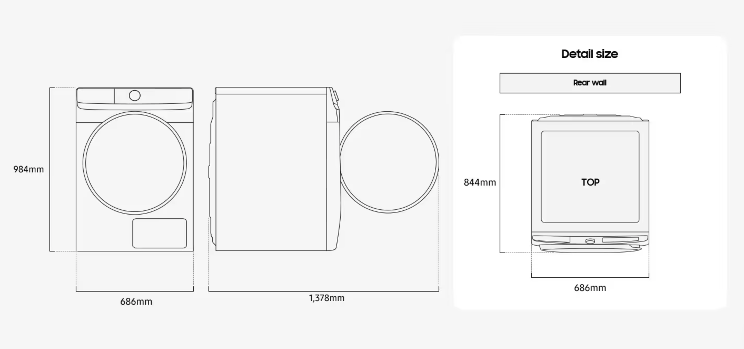 Fysieke specificaties 686 x 984 x 844 mm