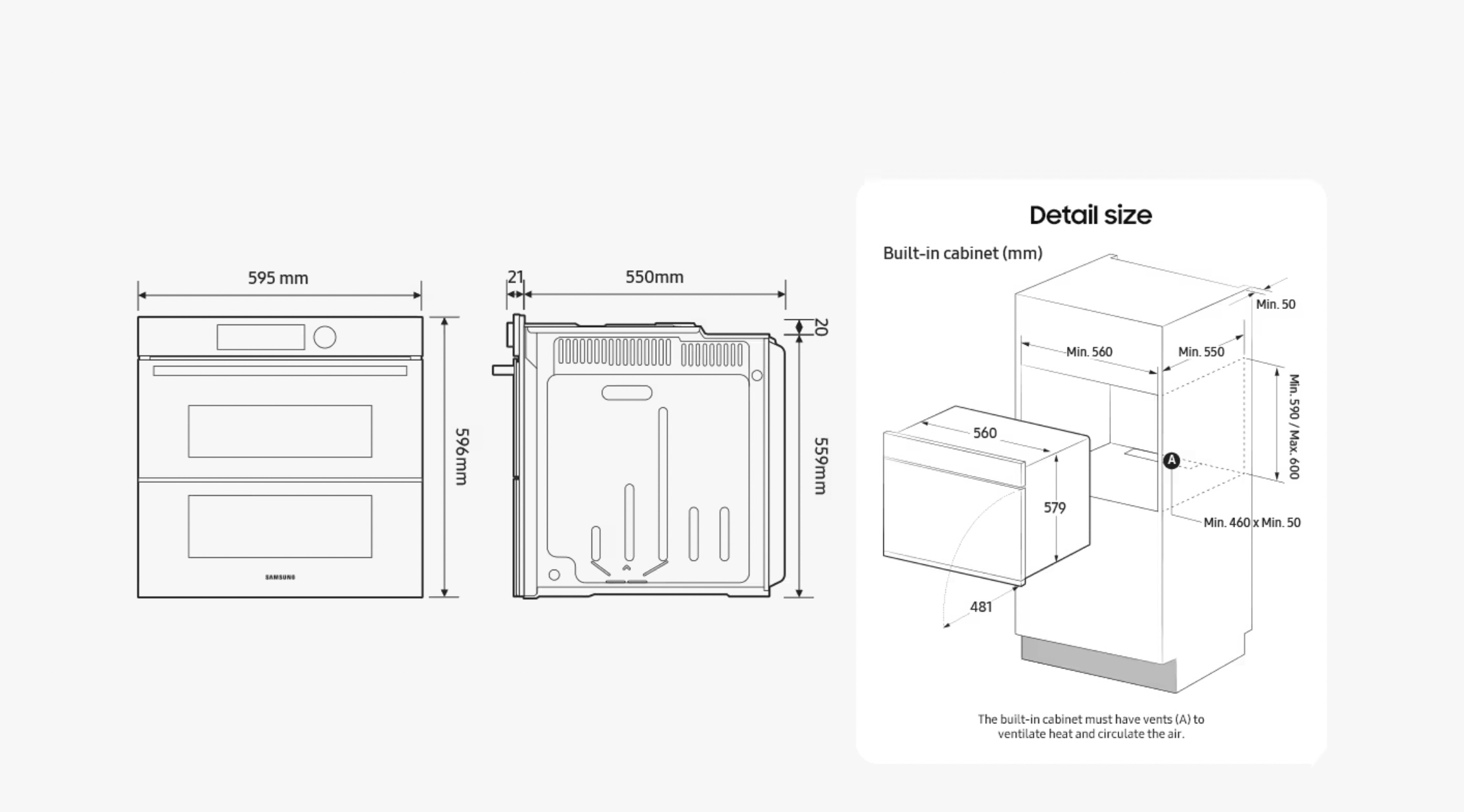 Buitenkant (BxHxD): 595 x 596 x 570 mm