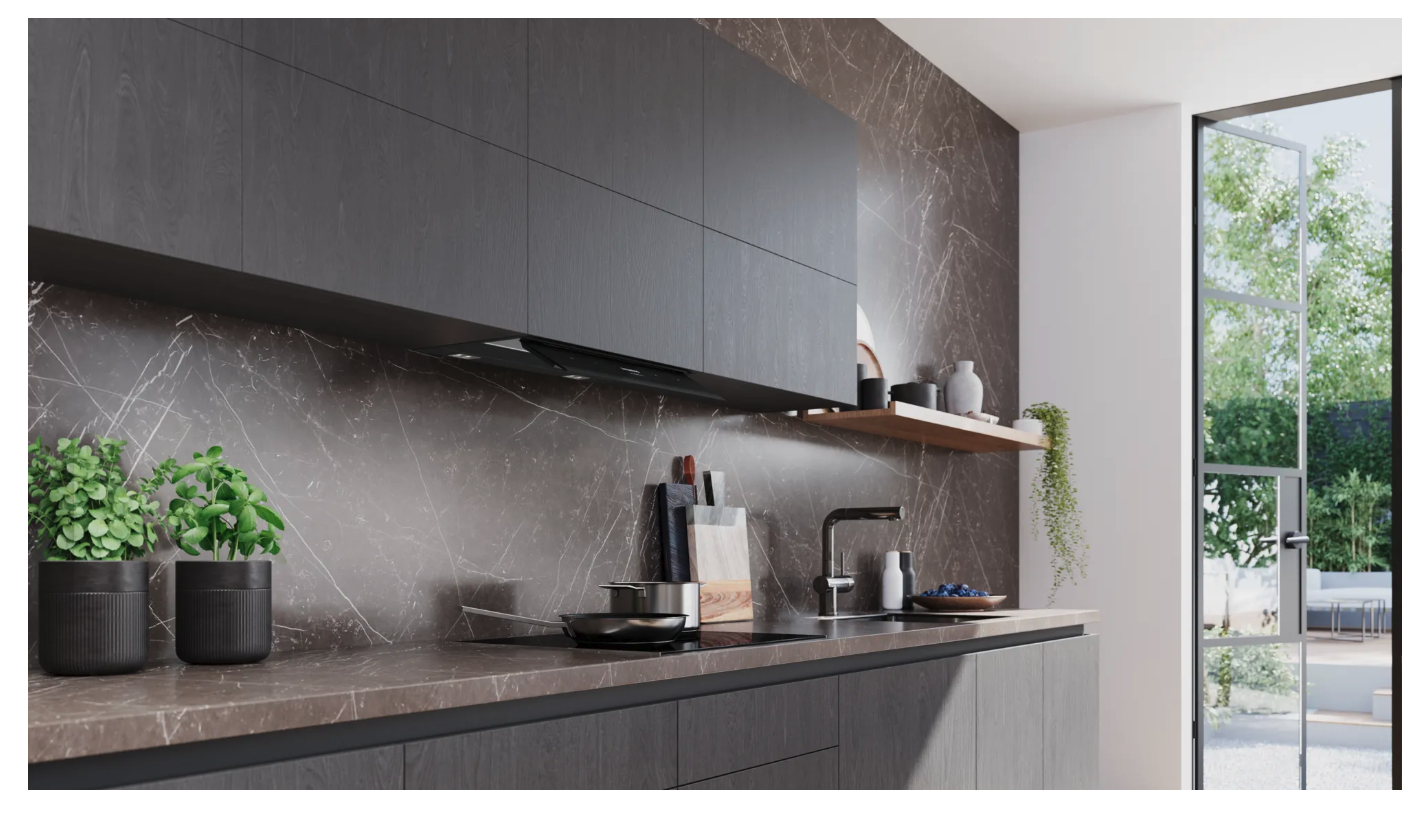 Dampkap IQ500 Geïntegreerde design schouwdampkap 60 cm, matt zwart, iQdrive, 3 standen + 1 intensief, 432 / 748,9 m3/h, 57 dB, touchControl, Home Connect - cookConnect, 2 PC, LM3 CT Z4012-B_LED_3W, , softLight, dimfunctie, licht op maat, intelligent hood automatic, klasse A+ Mat zwart A+
